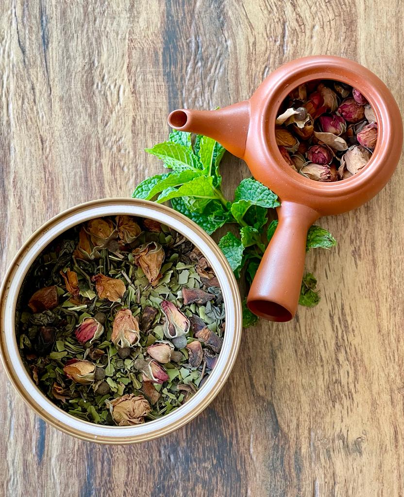 Rosa Branca: Efeito calmante, mantém a pele jovem e saudável. Ajuda a impedir que processos inflamatórios se espalhem pelo corpo, inclusive na pele, bloqueando o aparecimento de espinhas e envelhecimento precoce. Alivia os sintomas do período menstrual. Ajuda a desintoxicar o corpo. O chá age de forma depurativa para que as toxinas sejam mais rapidamente eliminadas, isso beneficia o organismo de forma geral e fortalece a imunidade.